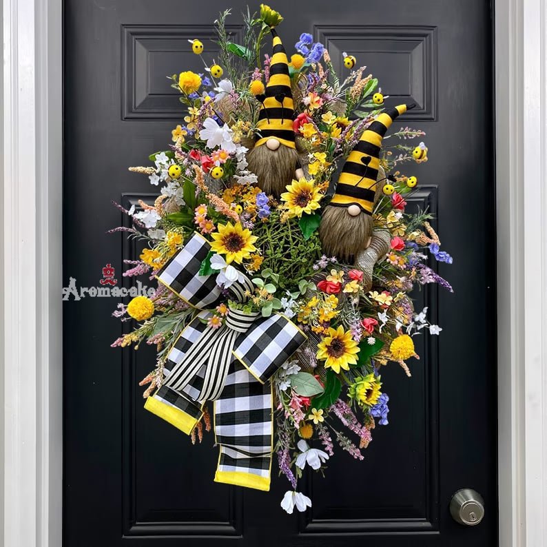 🐝Whimsical Bee Wreath, Summer Bee Wreath, Gnome Wreath, Fall Wreath, Farmhouse Wreath, Buffalo Check Wreath.This design will brighten your home for many years to come. Perfect for Spring, Summer, and Fall. Great for your front.