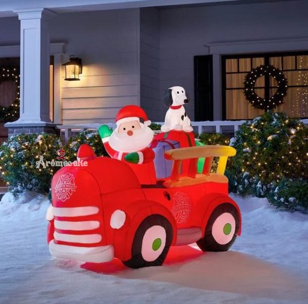 Christmas-5 ft inflatable santa driving vintage fire truck scene