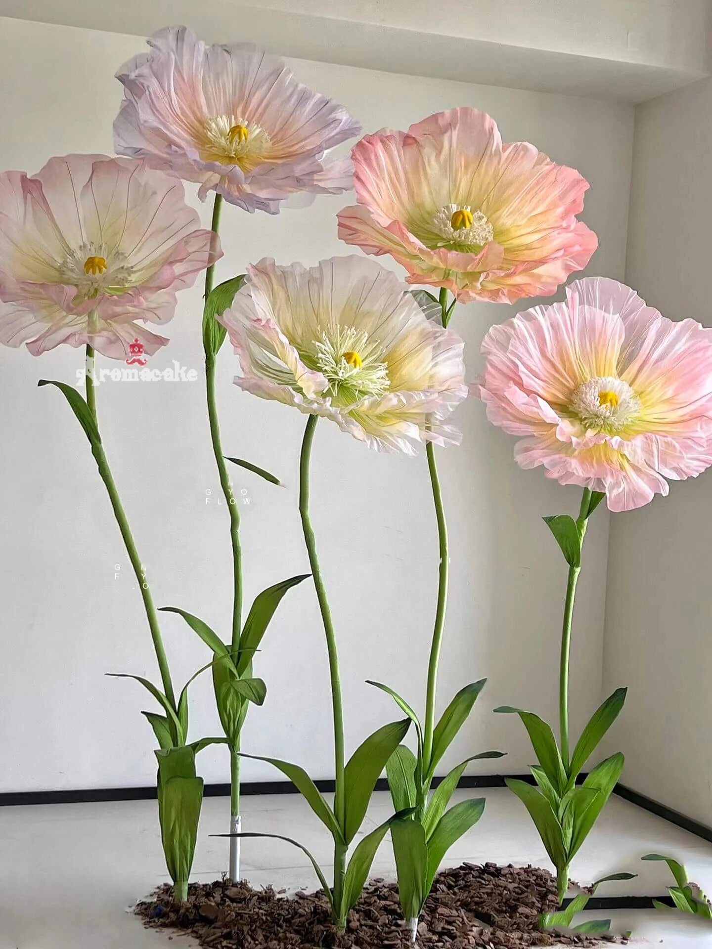 Our stunning giant flower decor has a beautiful shape and excellent workmanship. It can be disassembled at will for easy transportation. One person can complete the assembly. The height of the liftable base can be adjusted arbitrarily. The flower stem of the aluminum-plastic tube can be bent into the desired shape,outdoor waterproof.