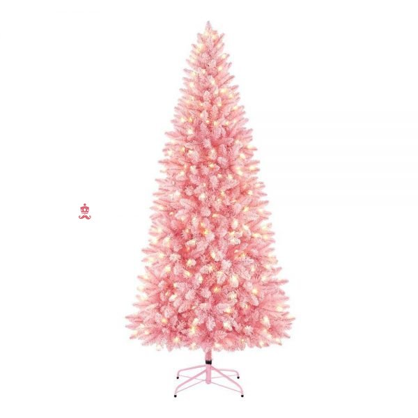 7 ft pre lit led flocked pink artificial christmas tree with 300 light mini warm white lights