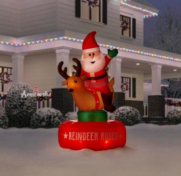 Christmas-animated inflatable santa and reindeer rodeo scene