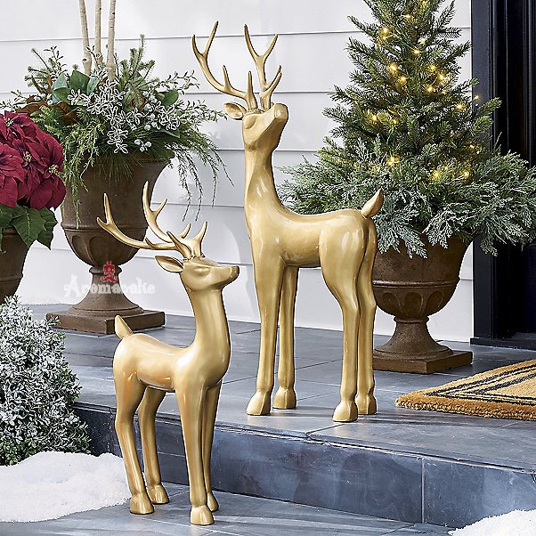 Brass-look, holiday deer sculptures