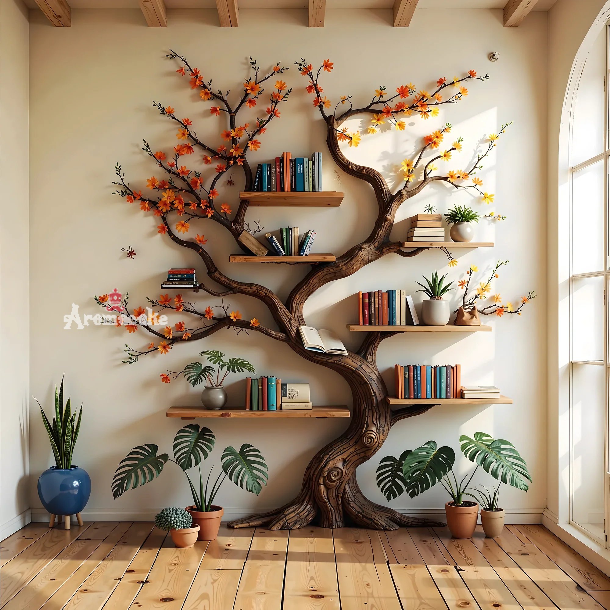 MATERIALS AND COLORS: Popular materials include natural wood. Finishes can range from natural wood stains to vibrant colors, depending on the desired aesthetic. FUNCTION : These bookshelves can serve as a focal point in a room while also providing practical storage solutions. They are often used in children's rooms, libraries or creative spaces. UTILITIES Tree-shaped bookshelves bring elegance and warmth to the home, bring nature closer to the family, you can arrange decorations and personal items to make the most of every space. EASY TO INSTALL With the design of skilled workers, users can install it easily and quickly without the help of experts. With the included user guide, you'll easily enjoy your new space without any problems. If there are any difficulties or problems during the installation process, we are always ready to support and stand by your side when you need them.