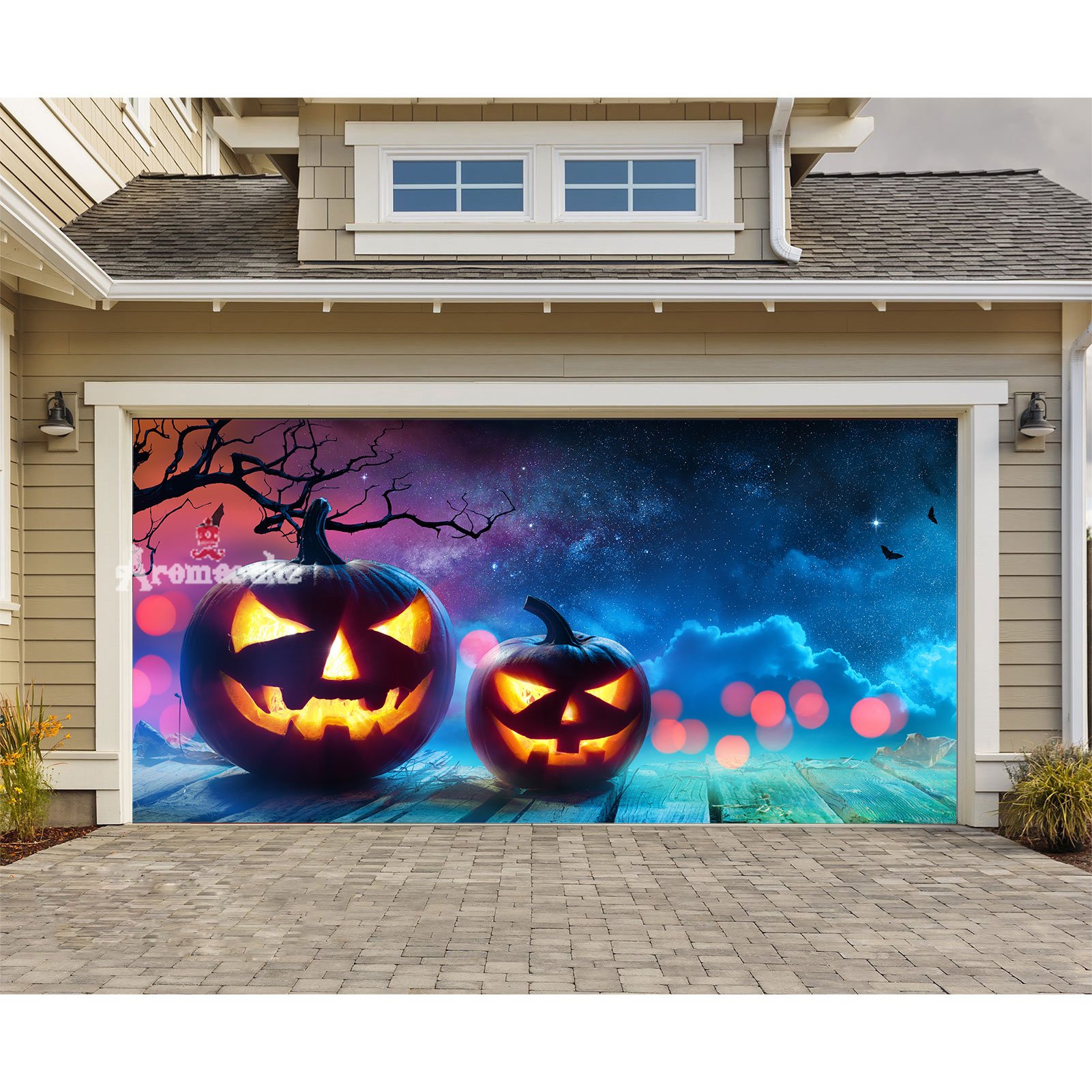 This year, we're making your Halloween a treat! Make the hair of beholders stand on end with this Halloween themed garage door banner! A banner mural that can be hung on your garage door in minutes.
