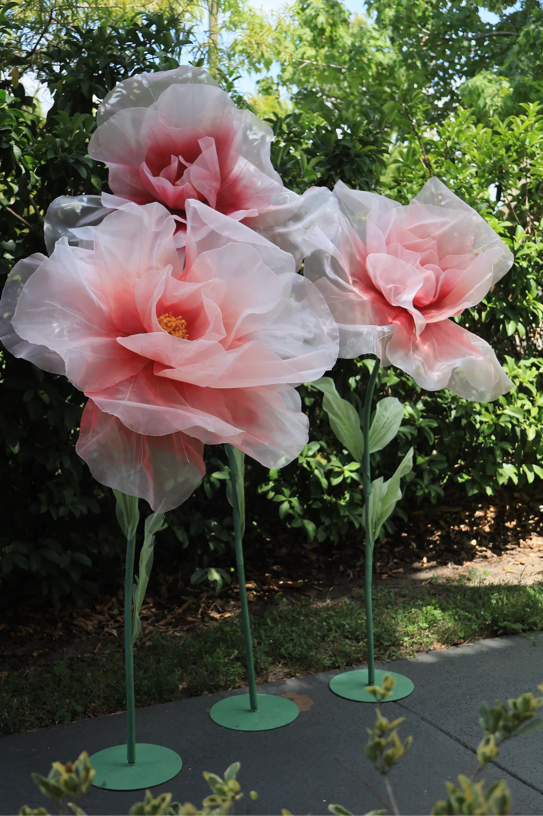 Our stunning giant flower decor has a beautiful shape and excellent workmanship. It can be disassembled at will for easy transportation. One person can complete the assembly. The height of the liftable base can be adjusted arbitrarily. The flower stem of the aluminum-plastic tube can be bent into the desired shape,outdoor waterproof.