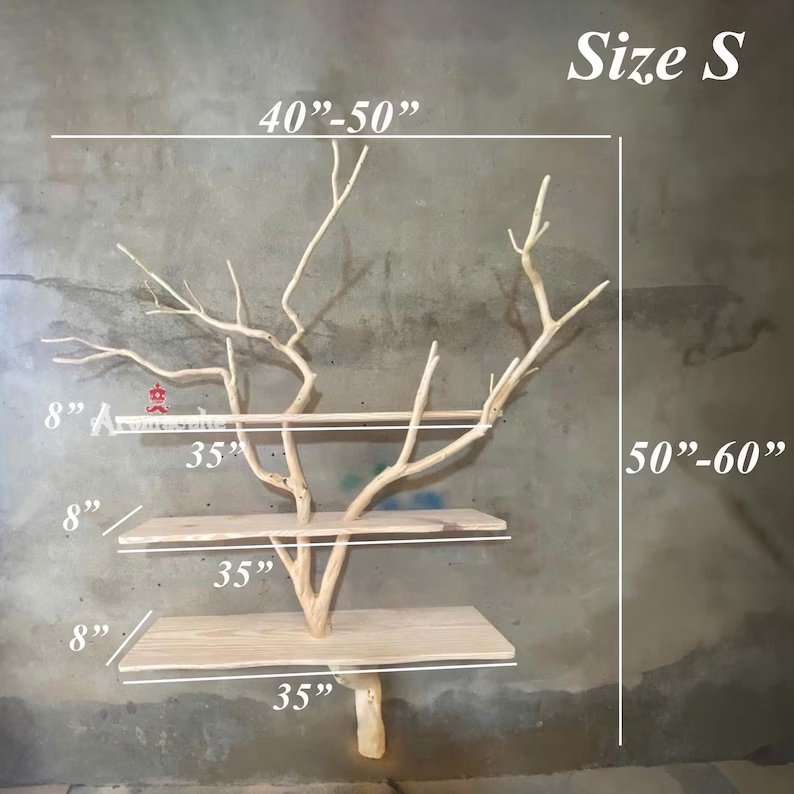 This driftwood branch shelves wall mount is designed by us to be very easy to install and has good load bearing capacity. We create beautiful, handmade shelves from natural tree branches, highlighting their unique shapes and textures. Our skilled artisans put their heart into every piece, making each shelf a unique work of art. Committed to sustainability and quality, we offer decor that is both useful and celebrates nature's beauty.