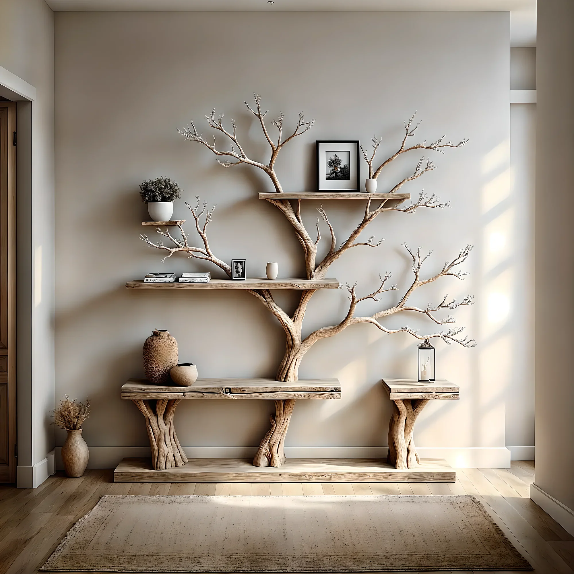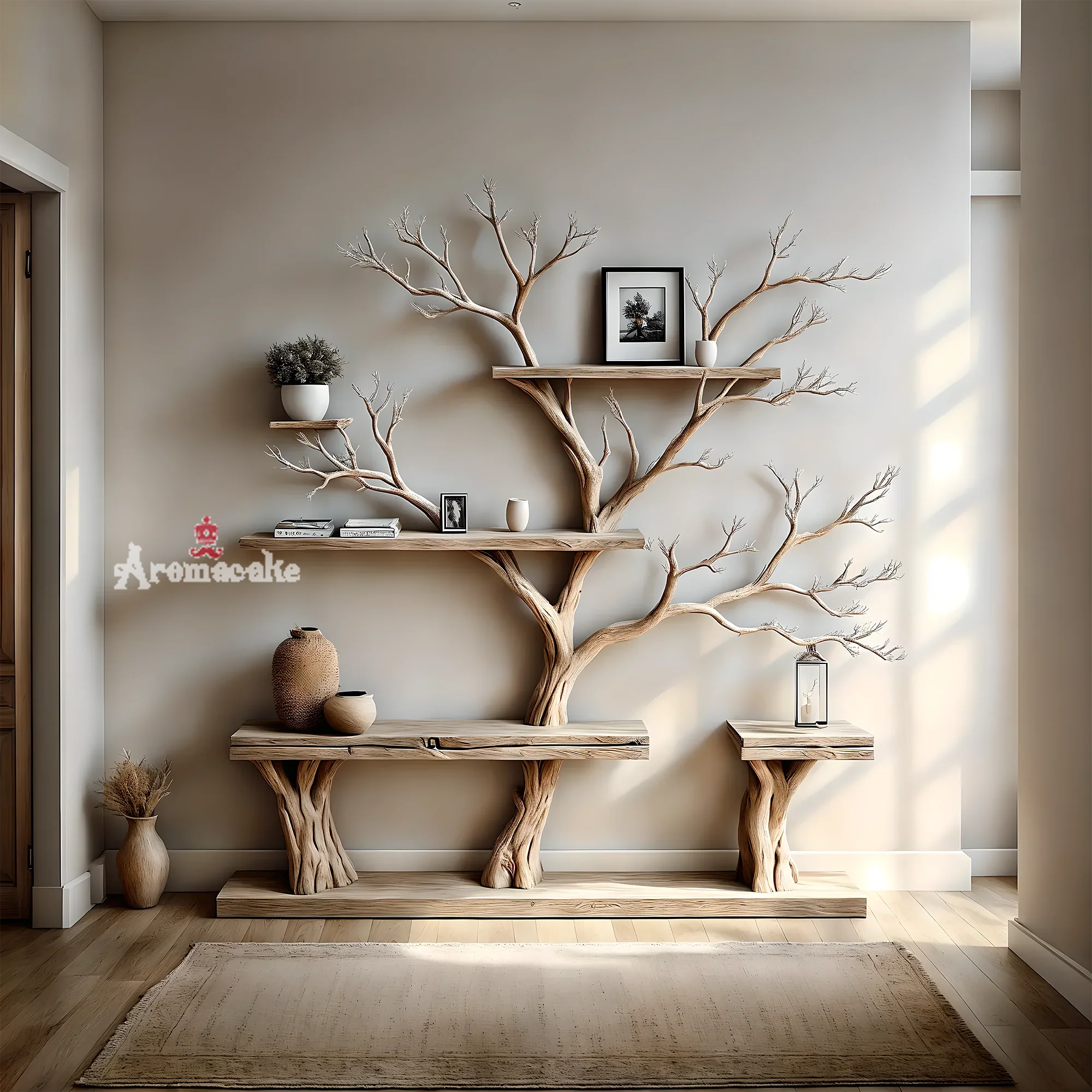 Tree-shaped bookshelves bring elegance and warmth to the home, bring nature closer to the family, you can arrange decorations and personal items to make the most of every space.