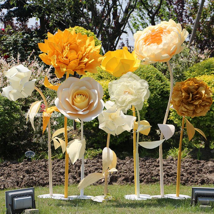 Our stunning giant flower decor has a beautiful shape and excellent workmanship. It can be disassembled at will for easy transportation. One person can complete the assembly. The height of the liftable base can be adjusted arbitrarily. The flower stem of the aluminum-plastic tube can be bent into the desired shape,outdoor waterproof.