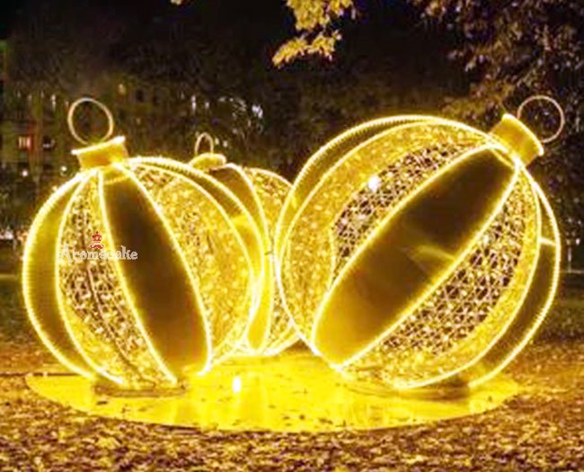 Gold Christmas Balls with Warm White Lights