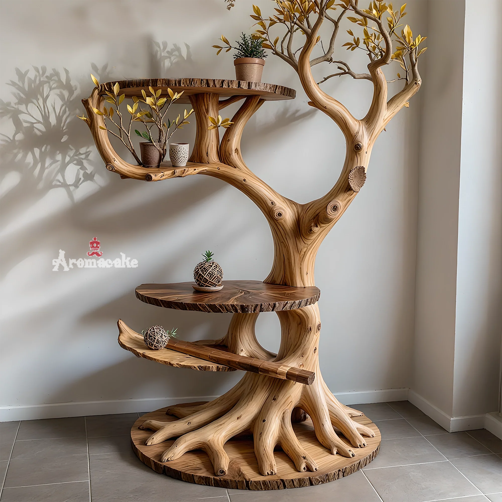 The artistic bonsai shelf is a creative product, suitable for those who love nature and want to bring natural beauty into their living space. With a design simulating a real tree trunk, this product is not only a piece of furniture but also a unique work of art, creating a subtle highlight for any space.
