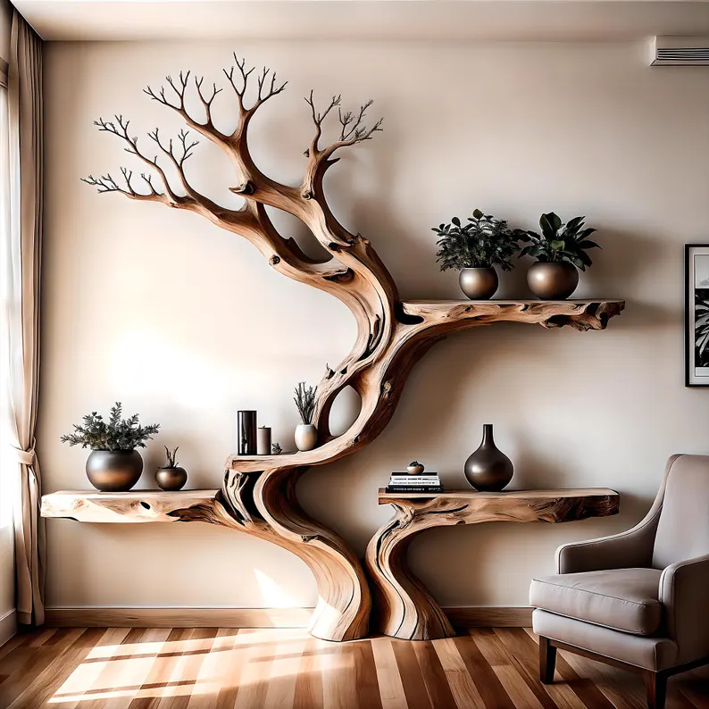 Tree branch bookshelves are often designed with a tree branch shape, creating a natural and lively feeling for the space. They can be used to display books, decorations or other small items. This combination of function and art makes the tree branch bookshelf an ideal choice for those who love a unique design style and close to nature.