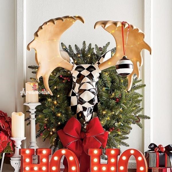 Christmas-Harlequin Moose Head