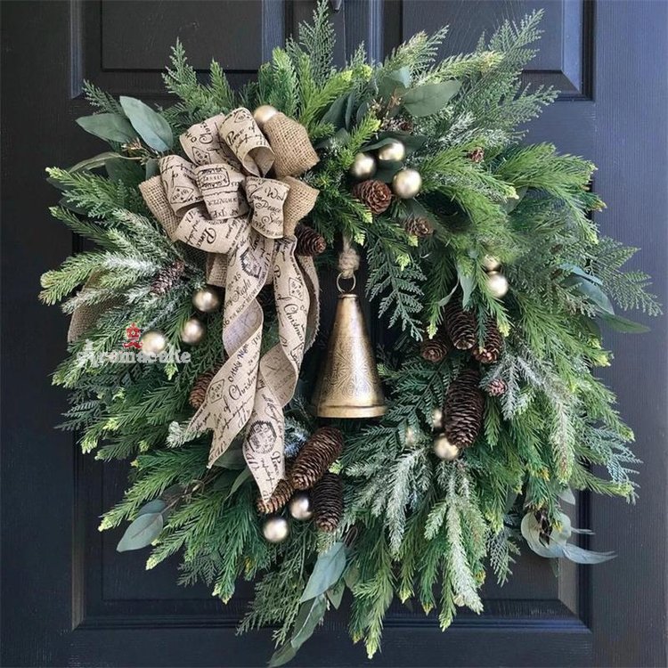 Beautiful Christmas Elements– the wreath is decorated with big red bowknot, gold bells, reindeer, red balls, flowers, green pine twigs, and Merry Christmas letters, add joy to your Christmas