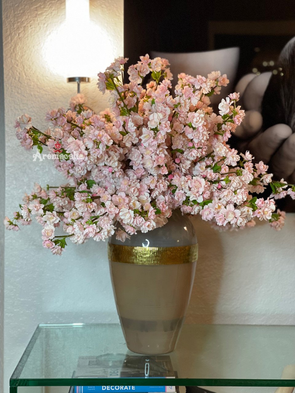 This bouquet of elegant pink cherry a adds a fresh and stylish touch to any room. The branches are presented in a our goddess glass vase, anchored in illusion water and are the perfect decorative accent for a large coffee table or dining room console.