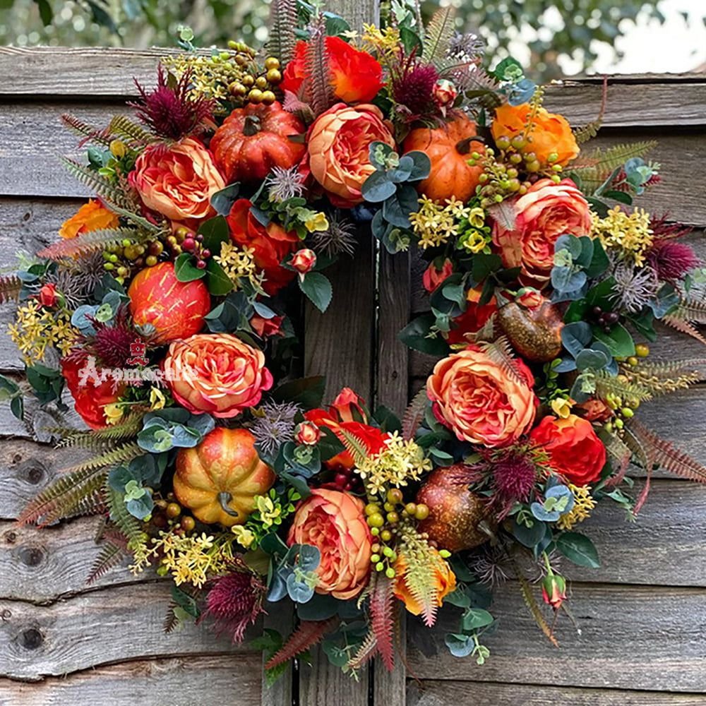 💖 This adorable farmhouse style pumpkin door hanger will brighten up your front door this summer! Say "welcome to our home" all season long with this faux peony pumpkin wreath. 💖 Enjoy this beautiful, luxurious wreath for years to come! Welcome your guests with this stunning Forever summer pumpkin wreath.