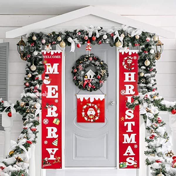 Christmas-Merry Christmas banner for home Christmas porch sign decorations for holiday indoor outdoor front door home wall hanging Christmas decorations