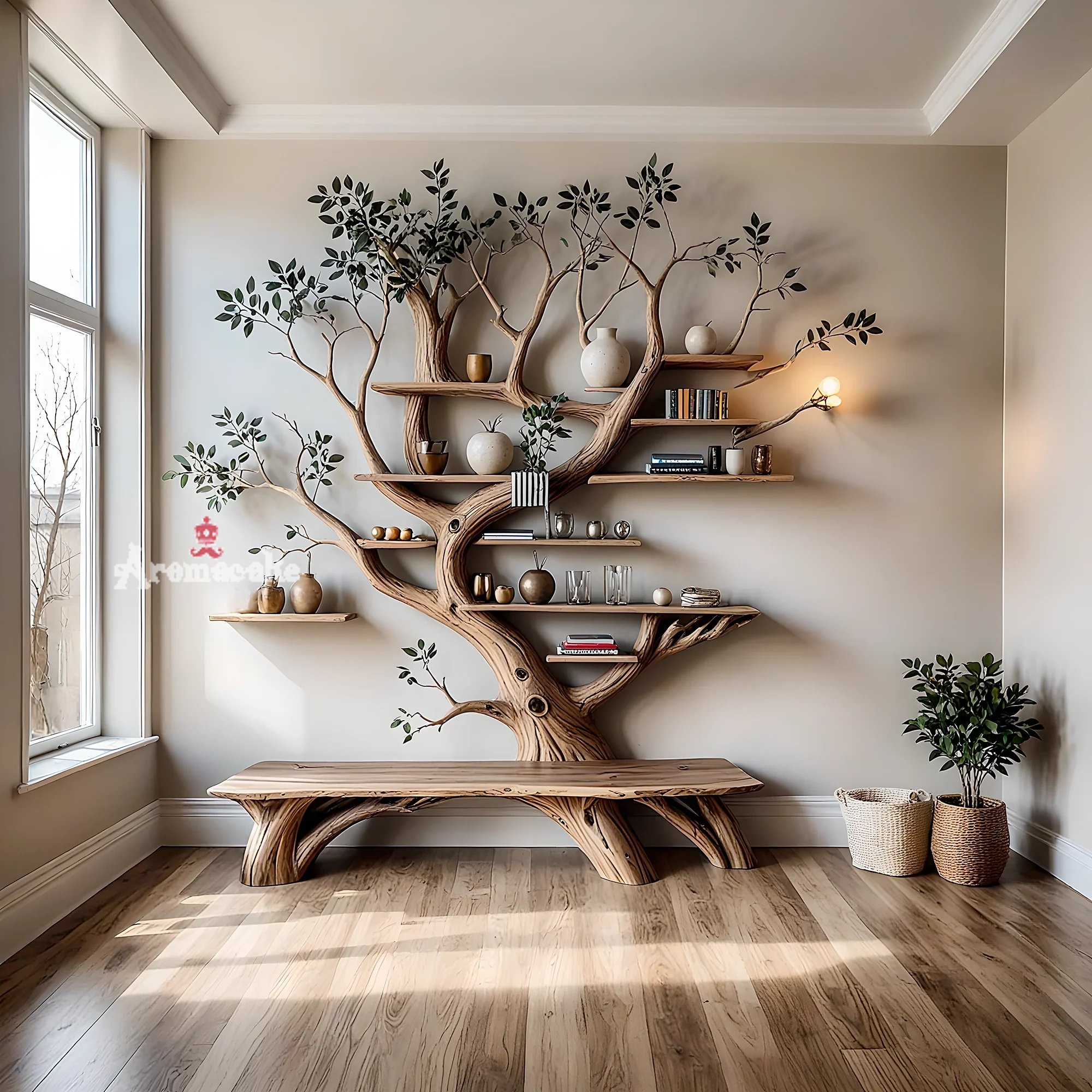 In addition to the function of storing books, the tree-shaped bookshelf is also a place where you can arrange decorations and personal items in a creative and aesthetic way. In particular, it is very suitable for small rooms, helping to optimize space and bring a feeling of relaxation.