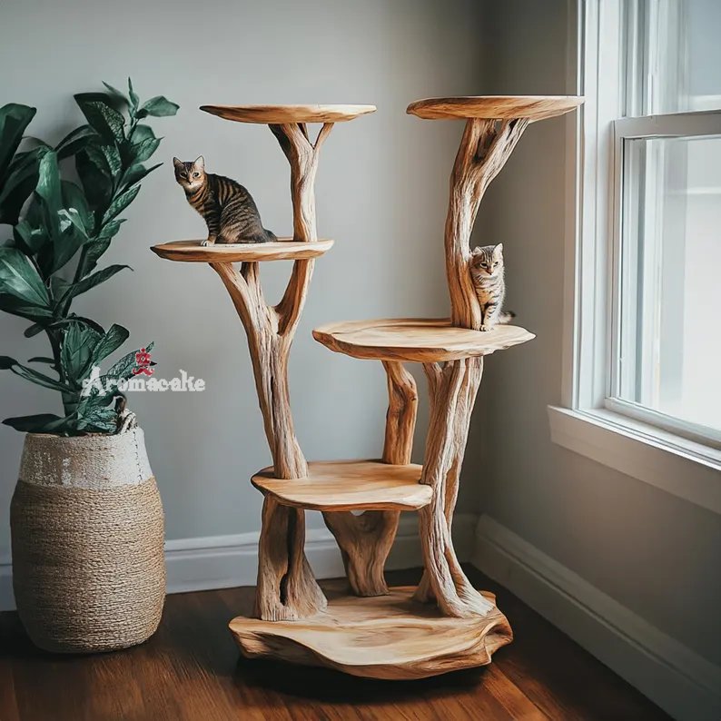 The tree-shaped wooden shelf in the picture is a creative interior product, handcrafted from solid wood by skilled craftsmen with many years of experience. The design is inspired by nature with wooden branches forming unique decorative shelves, both optimizing living space and enhancing the beauty of the house.