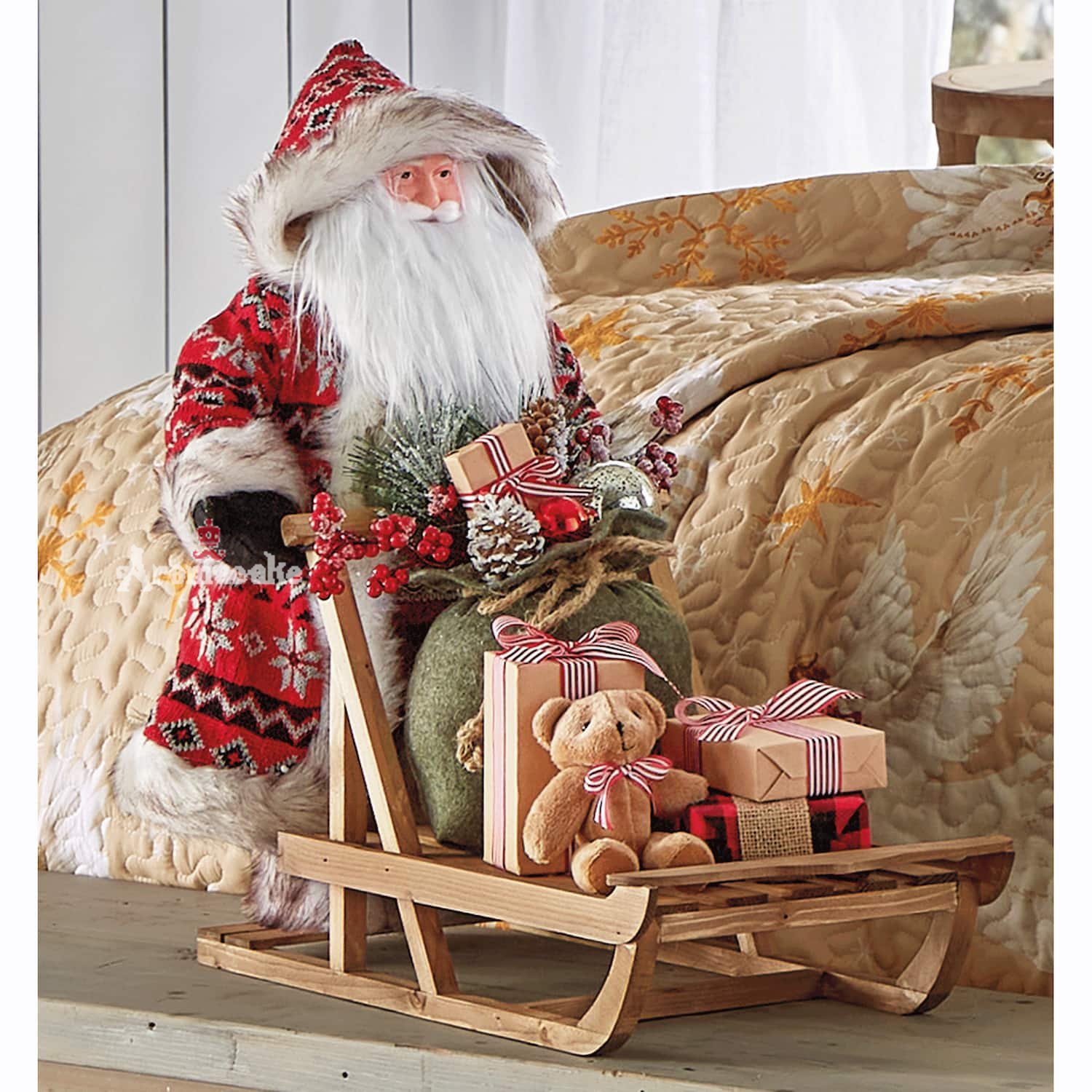 Finely detailed Nordic-inspired Santa with his sleigh full of presents makes an impressive centerpiece for your holiday display.