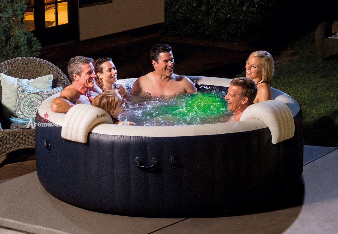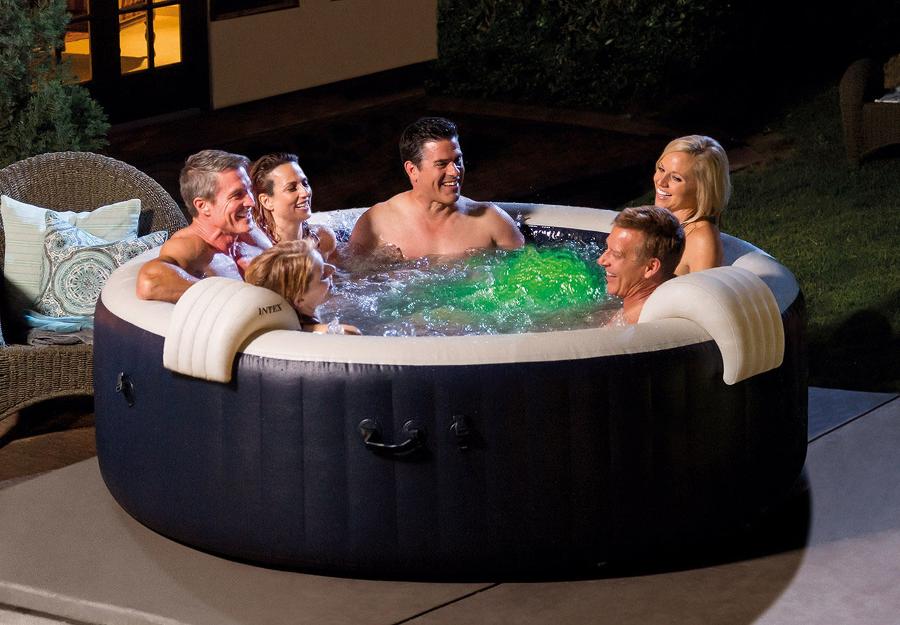 FITS UP TO 6 PEOPLE: Provides relaxation at the touch of a button for up to 6 people with the easy-to-use control panel; The easy to use control panel activates the 170 high powered bubble jets surrounding the interior of the spa for a refreshing massage; Dimensions: (L x H): 85 x 28 inches; Cord length: 25 feet