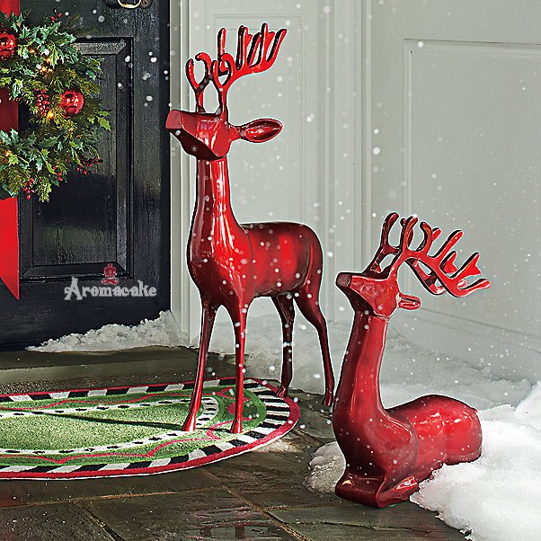 Cast-aluminum Standing Deer(42579): 21-1/2"L x 9-1/4"W x 34"H, 12lbs.