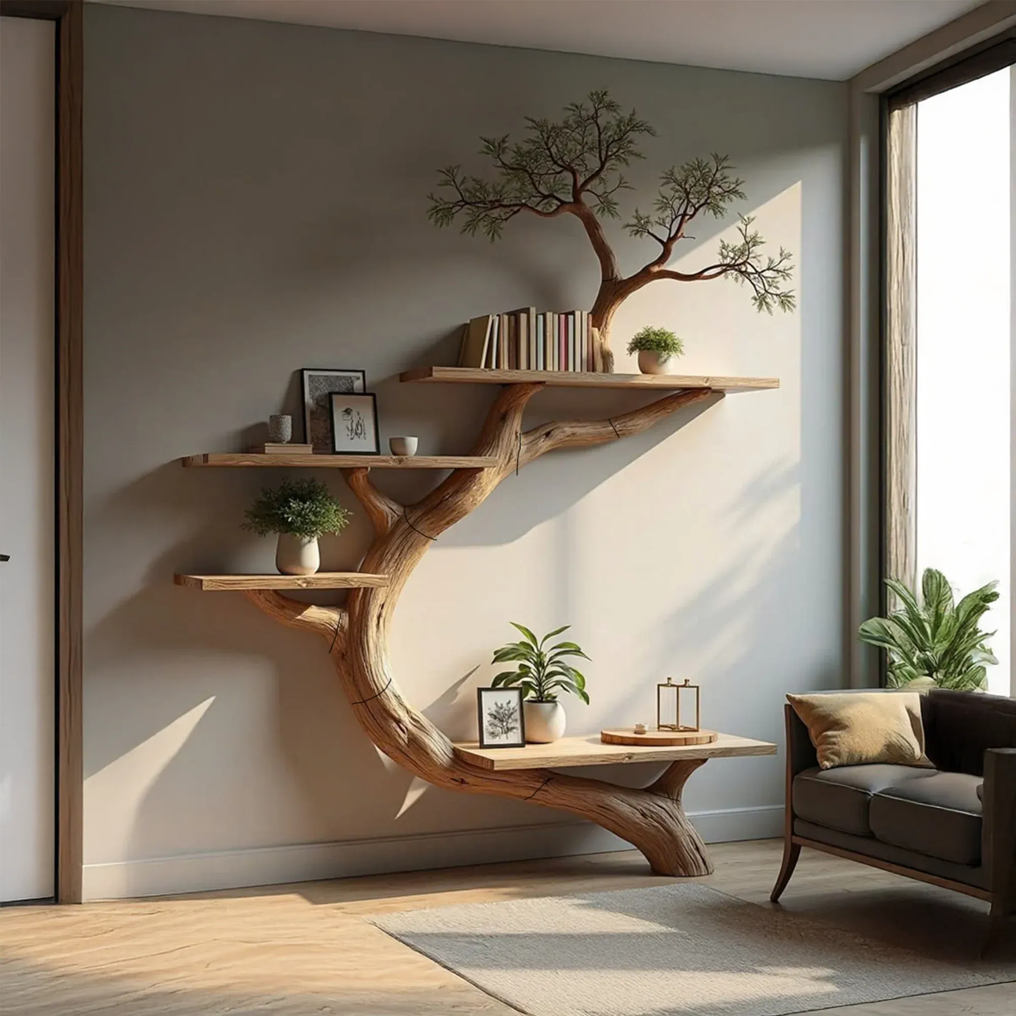 Our tree-shaped bookshelves are carefully handcrafted, with each branch showcasing its natural beauty and uniqueness. Since real tree branches are used, every piece is one-of-a-kind, ensuring no two bookshelves are ever the same.