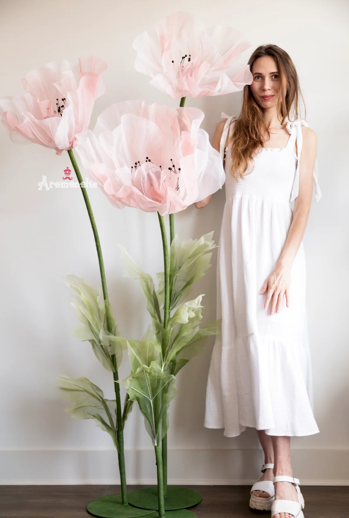 Handcrafted Detail: Each petal is hand-cut, embossed and assembled by experienced craftsmen to restore the natural fluffy texture. Durable & Fade-resistant: Anti-fading paper and moisture-resistant treatment are used, and the colors remain bright after long-term display. Sturdy Metal Stem: Built-in adjustable metal rod and weighted base, firmly support 210 cm height. Versatile Styling: Suitable for wedding backgrounds, brand activities, shooting settings, exhibition hall installations and other scenes.