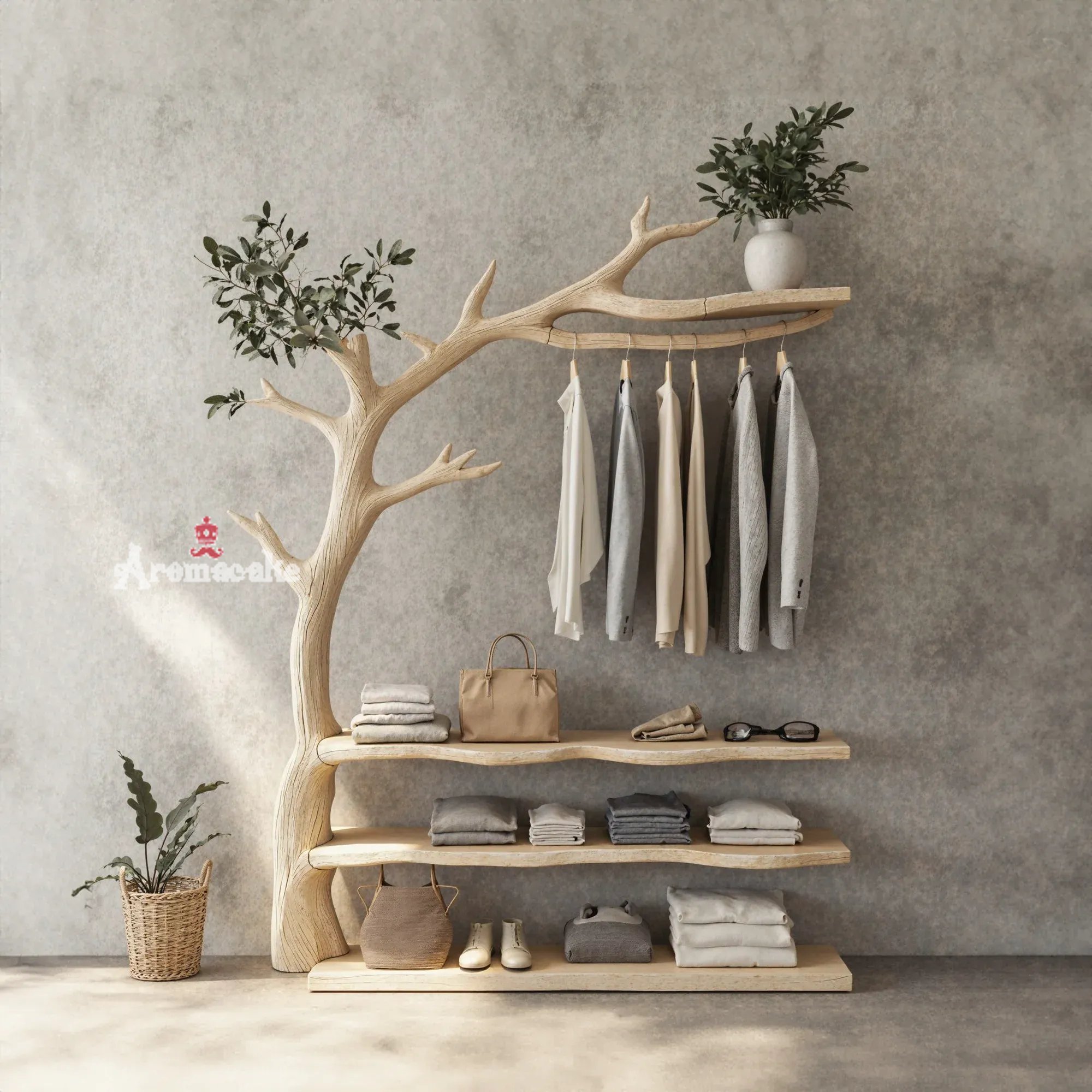 Bring a fresh and creative touch to your living space with a one-of-a-kind tree-shaped clothes and shoe rack. This product mimics the natural form of a tree, featuring soft, curving branches that add a stunning, unique element to any room.
