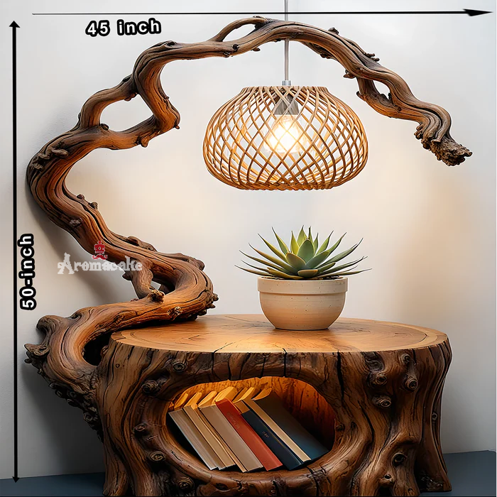 **Unique and natural design**: Reading lamp combined with small table made from solid driftwood brings rustic, natural beauty but no less luxurious. Driftwood wood with unique grain patterns creates a completely different product, suitable for the workspace or reading corner at home.