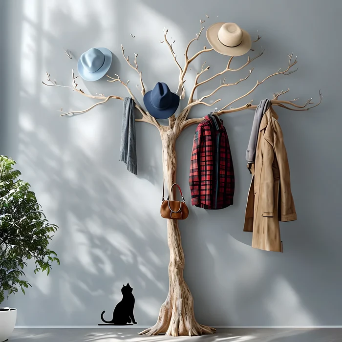 3. Design and shaping**: Based on the natural shape of wood, the artist will design tree branches to make places to hang clothes. The parts are cut and smoothed, retaining natural lines but still ensuring balance and convenience.
