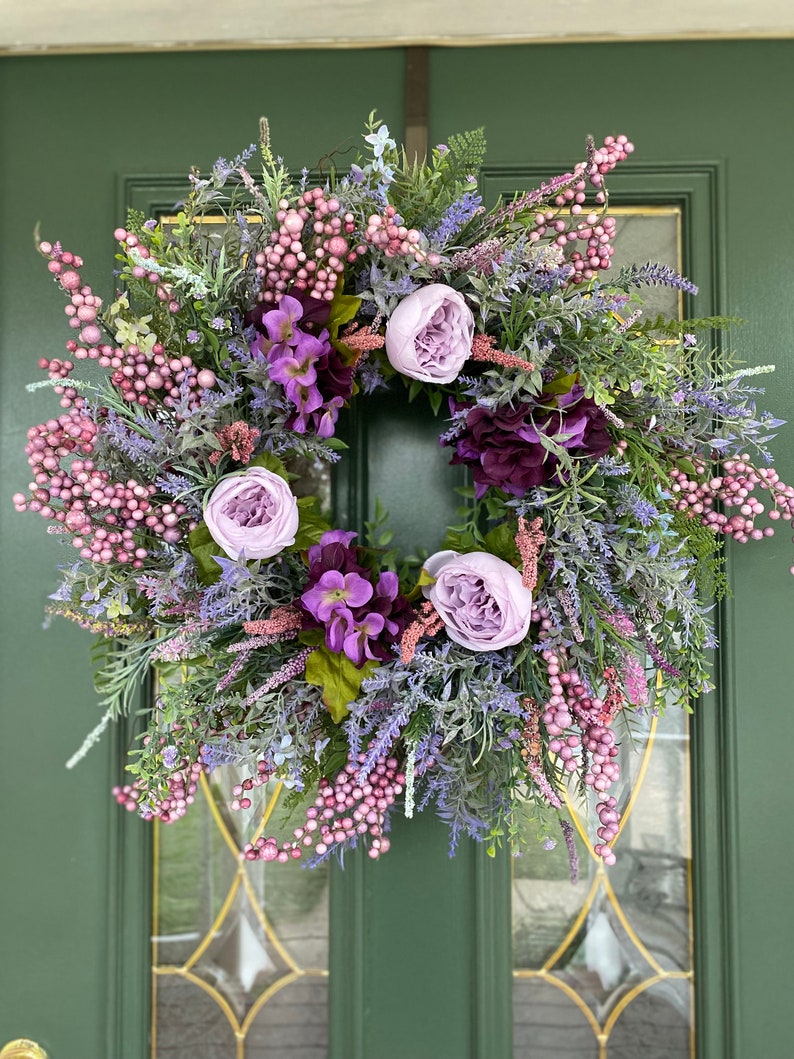 🎈Material: Grapevine, silk flowers, plastic eucalyptus greneery, floral wire Note: It is recommended this wreath be used in a covered area to protect it from the elements.