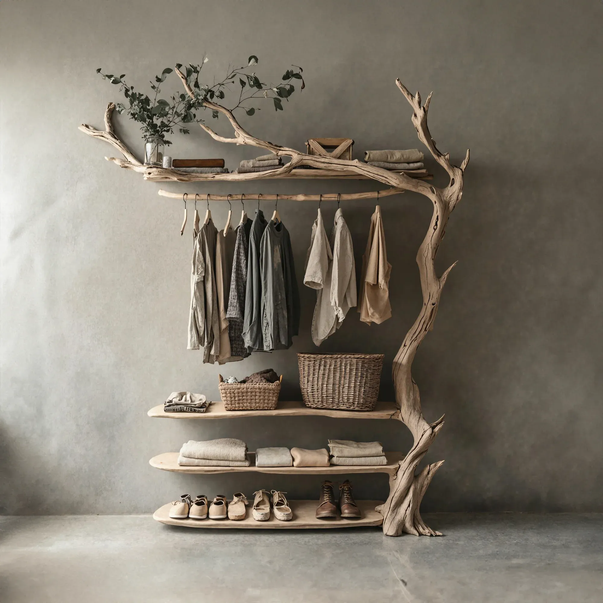 Bring a fresh and creative touch to your living space with a one-of-a-kind tree-shaped clothes and shoe rack. This product mimics the natural form of a tree, featuring soft, curving branches that add a stunning, unique element to any room.