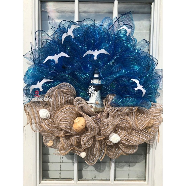This Lighthouse Wreath will look lovely gracing your front door this Summer!Use this Sweet Spring/Summer Decor to say "Welcome to our home" throughout the season.Enjoy this beautiful, gorgeous wreath for years to come!