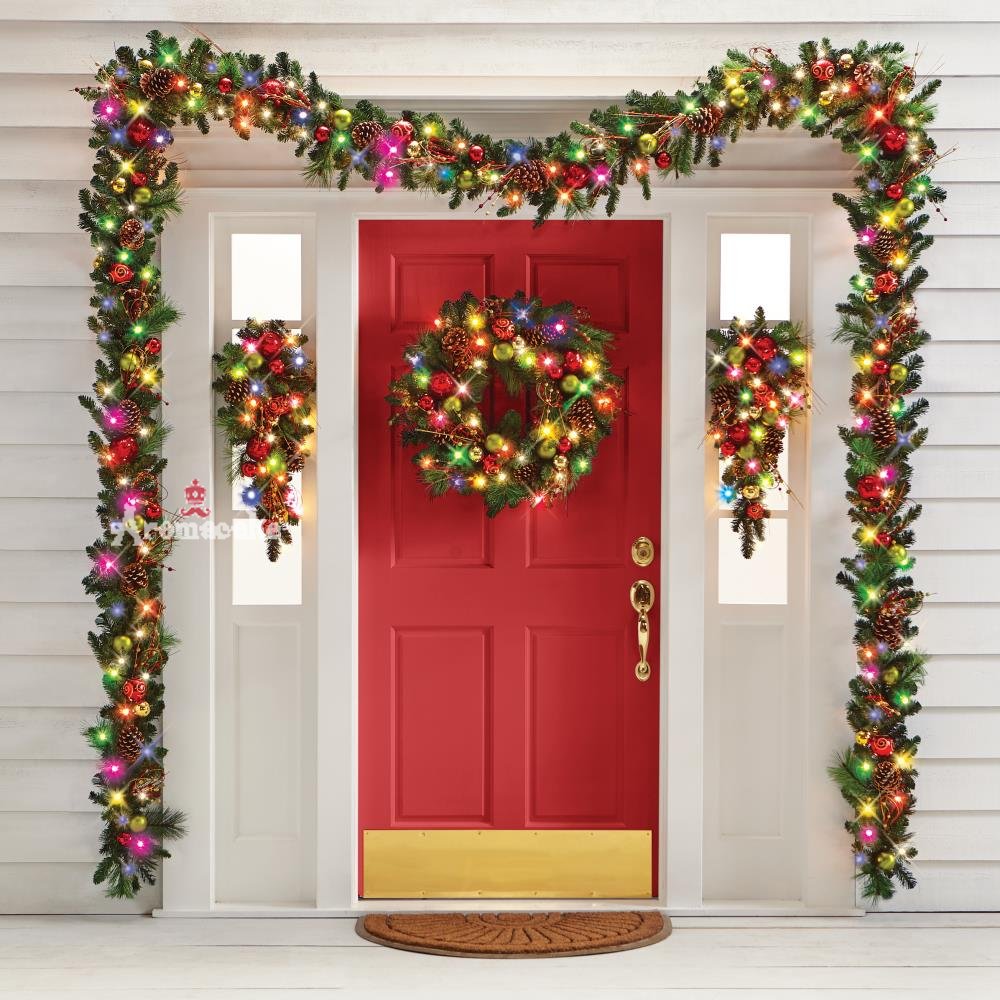 The Cordless Prelit Red And White Holiday Trim (Garland): With 120 LEDs and 120 branch tips. 72" L x 5" Diam. (6 lbs.). Most doorways will need3 garlands.