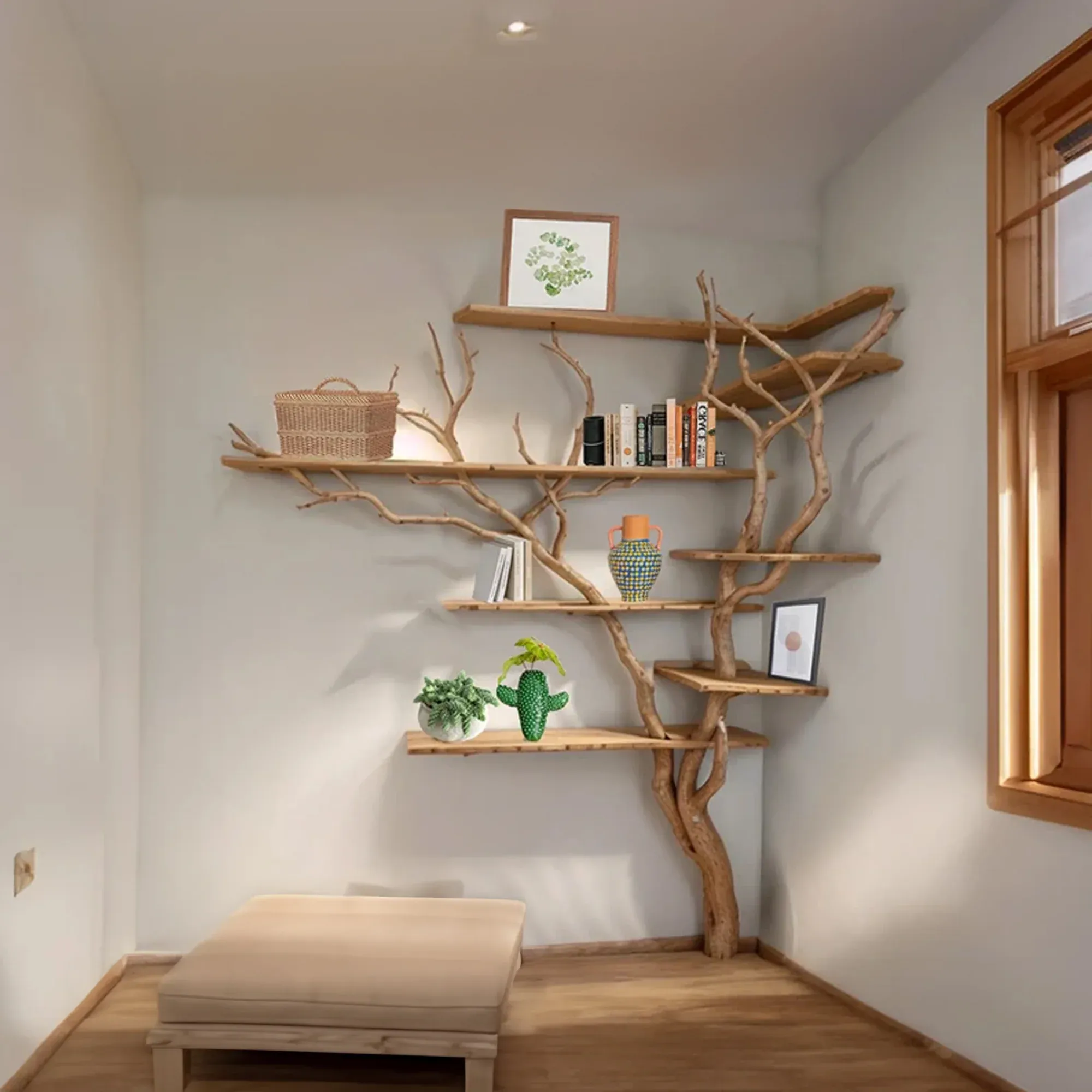 Utility: Corner tree branch shelf not only bring beauty but also enhance the utility of your space. You can creatively arrange books, decorations, personal items or even plants, taking advantage of every space effectively.