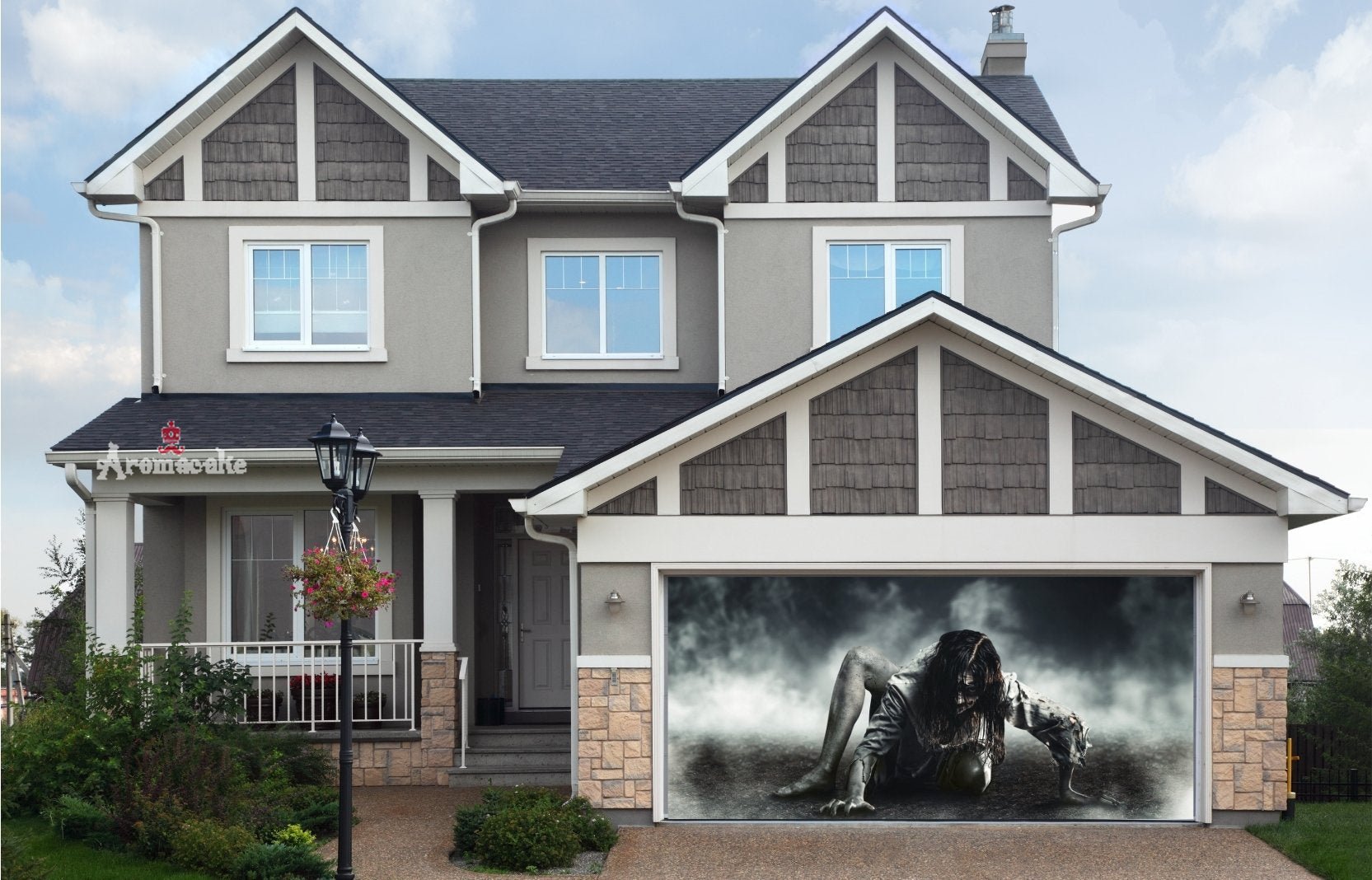 Looks like real ! Made out of top quality material and high resolution dye-sublimation printing. Festivemural selling unique garage door covers for the all year and seasons its made of high quality 100% polyester weather resistant and can be used for sectional panels and one piece tilt-up garage doors, if you’re garage door have dent , rusty or you just like to change the front of Your front house this is the great solution for your home.